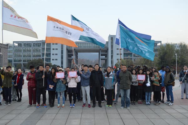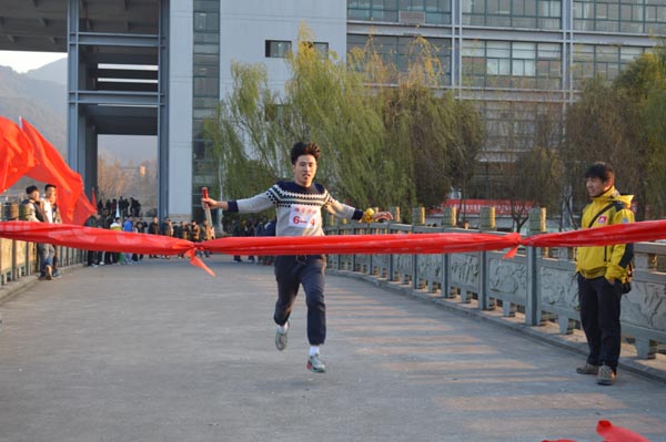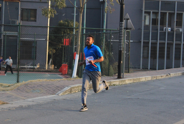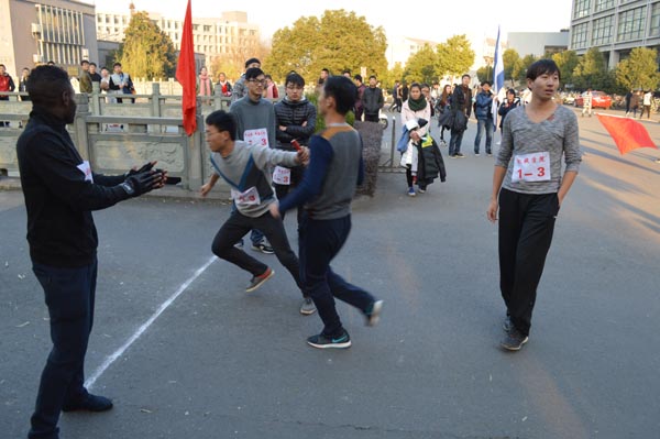 12月18日下午,学校举行“阳光体育”环校接力长跑比赛。本次比赛围西蜜湖一周,以和山广场为起点,经精艺园、闻理园、听松公寓、田径场、西和公寓、在建风雨操场、和水路、行政楼和图书信息大楼,沿途设立6个接力区,每个学院的男女运动员经过四圈共24棒接力,最后经管学院、建工学院、人文国际学院获得前三名。外国留学生也参与了比赛,不少路过的同学也加入到长跑的队伍中去。