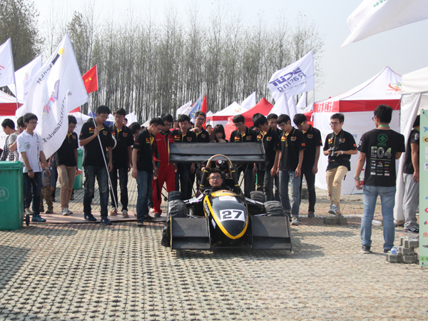 本次是米乐官网首次参与该项赛事,车队从去年年底开始组建,最终由车辆工程、汽车服务工程、机械制造及其自动化等多个专业的39名学生组成。同学们自主设计、制造了“进击者1号”参赛,与来自国内外院校的62辆油车,20辆电车竞技。在静态项目营销答辩中,车队使用Prezi软件进行展示令评委眼前一亮。动态项目比拼中,“进击者1号”在各项目也取得不俗战绩,尤其是在积分分值最多的耐久性和燃油经济性测试中,首发车手平稳发挥让车预热,后发车手急追猛赶,一鼓作气拿下当天上午参赛车队中单圈速度第二的成绩。