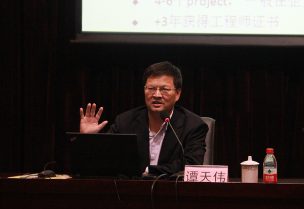 谭天伟院士介绍了全球工程教育的有关情况,例举了德国/法国工程师培养模式、英国和美国工程教育改革。他说根据美国工程院对工程教育的调研结论,要将真实世界的体验融入工程师教育。