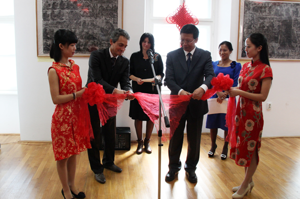 9月27日,“大美孔子—绝版木刻版画展”在罗马尼亚克鲁日拉开帷幕。正在罗马尼亚访问的米乐官网党委副书记陈根芳、克鲁日市政府官员,巴比什波雅依大学副校长、特兰西瓦尼亚国家历史博物馆馆长等出席为展览剪彩并致辞(图1)。克鲁日孔院中方院长冯少中宣读了克鲁日市市长EMIL BOC先生的贺信。