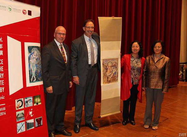 图1 中央音乐学院代表给埃尔福特孔子学院赠送古龟兹画作