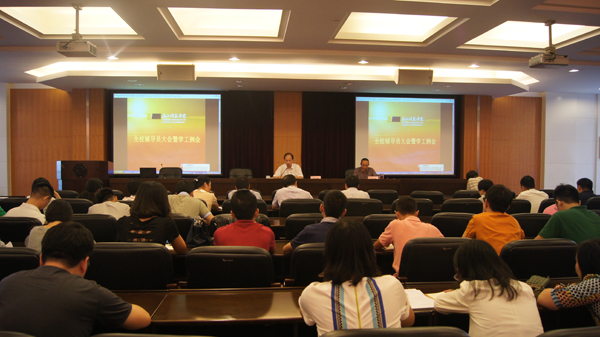 9月17日下午,学校召开全体辅导员会议。校党委副书记周加敏出席会议并讲话。相关职能部门负责人,各二级学院学工负责人,全校辅导员及学生处工作人员参加会议。