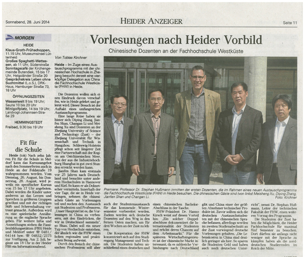 日前,米乐官网电气学院单建奋、理学院许梅生、章迪平及经管学院李长安4位教师赴德国西海岸应用科学大学交流进修。德国有关媒体对此事进行了报道。