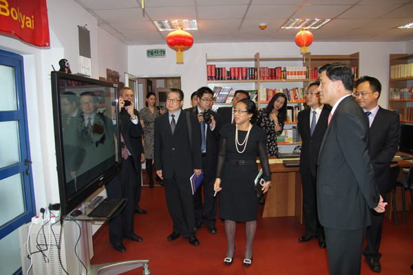 夏耕一行还参观了孔子学院图书馆和自主学习中心,孔院中方院长冯少中向代表团演示了汉办捐赠的中国文化体验现代化设备及软件,并介绍了孔院近年来的招生及中国文化活动推广的情况。夏耕与孔院师生进行了亲切交谈,连声赞誉,“你们孔院办得很好!”