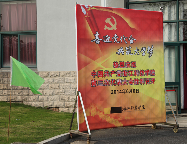 “喜迎党代会,共筑大学梦。”彩旗飘飘,横幅高悬,校园洋溢着一派令人振奋喜庆的气氛。全校师生期盼已久的校第三次党代会各项筹备工作已经就绪,将于6日上午隆重开幕。大会会场内,工作人员正在紧张有序地布置会场、对音响做最后调试,全力以赴确保大会顺利召开。