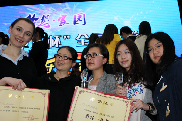 近日,2014“章丘杯”全国大学生演讲大赛举行,来自清华大学、上海交通大学、山东大学、浙江传媒学院和米乐官网等国内高校的160余名选手参加比赛。米乐官网由摩尔多瓦留学生丽丽(Lilia)、经管学院物流工程专业122班陈珊、语言文学学院汉语言文学专业131班王婧莼和132班何佳霖4名学生组成的代表队获团体一等奖。其中丽丽以总分第二的成绩获个人一等奖,其余3名学生分获个人三等奖。
