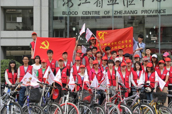 艺术学院中研会一直秉承志愿者服务精神,用青春奉献爱心;关爱白血病儿童,展现大学生正能量。自2012年12月起,艺术学院中研会与浙江省血液中心合作定期组织献血及宣传志愿活动,不仅在校园里开展宣讲会、宣传展、募捐活动等;而且走出校园,走进白血病儿童病房,与多名白血病儿童进行互动活动,同学们尽自己的力量为孩子们带去快乐。截至今年3月,爱心病房组织团体成分献血11次、公益骑行2次、宣传展2次、募捐1次、无偿献血表彰大会1次,以及参加各类校外宣传活动;其中,爱心病房负责人环艺112班胡庆元同学个人无偿献血志愿服务150小时以上,累计献血6700毫升以上,副省长郑继伟在看望献血志愿者时曾与他进行交流。