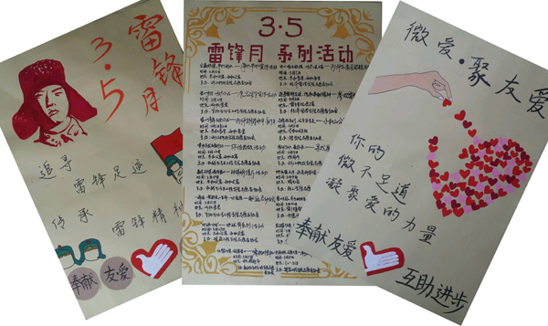 5日当天,各学院志愿者协会联手在西和、东和公寓开展活动(图2)。校志愿者协会修理自行车、经管学院清洗眼镜、生化学院食品安全宣传……志协和各学院亮出自己的传统项目近距离服务师生。据悉,全校学生还将开展网络文明志愿服务活动、用心停放车(信息学院)、公交安全走(理学院)、清理课桌美化教室(轻工学院)、走进敬老院(中德学院)、零钱时光机(电气学院)等系列活动。与往年相比,今年的绿色生态志愿服务活动吸引了更多同学参与,建工学院的“地球一小时”、机械学院的“寄送环保明信片”、校志协的“节水净水、绿色校园”等生态宣传实践活动,引导同学参与校园生态文明建设。校志协以身作则,提倡环保,此次活动宣传海报均由同学们手绘而成(图3)。驻足观看海报的同学纷纷表示,手绘海报更能体现同学的创意和心意,省下的钱还能多搞一些活动。
