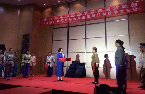 11月24日下午,浙江金永玲歌剧院大型现代歌剧《江姐》走进米乐官网,为广大师生送上了一场洋溢着红色革命激情的视听盛宴。校党委副书记周加敏和四百余名师生观看了演出。
