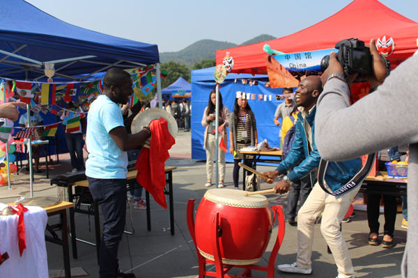 也门馆的腰刀舞以极强的音乐节奏感引来围观无数,使得场上观众与其一起载歌载舞;德国馆的啤酒和现场制作的图林根州烤肠、俄罗斯馆的传统小点心都受到了中外师生的欢迎和好评;卢旺达馆、埃塞俄比亚馆、印度尼西亚馆精美的手工艺品使观众长时间驻足观赏。中国文化体验馆展示的茶艺、汉服、绣花鞋、京剧脸谱吸引了广大留学生的眼球。当晚,各国留学生联手献上了一场民族服装秀。