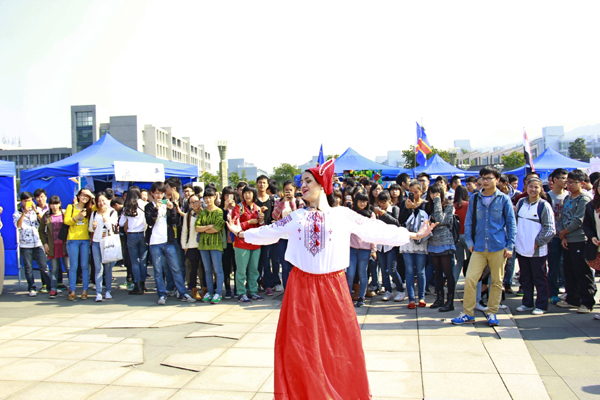德国的烤香肠啤酒、罗马尼亚的传统精美彩蛋、印尼传统乐器昂格隆……11月7日、8日,首届国际文化节在和山广场举行。也门、斯里兰卡、印度尼西亚、土库曼斯坦、蒙古、俄罗斯、德国、罗马尼亚、卢旺达、刚果金、赞比亚等20多个国家留学生分别设立展馆,展示各国风景名胜、民俗传统及特色服饰,浓浓异域风情让学生们仿佛置身“世博会”。