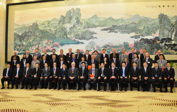 图1副省长熊建平(前排右九)与勃洛歇教授(二排右七)等西湖友谊奖获得者合影留念