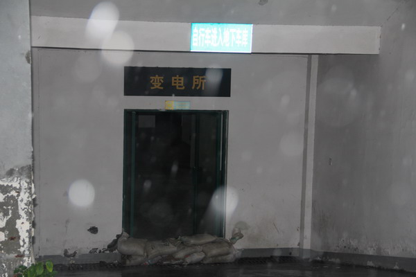 图4 图书信息中心地下配电房前堆放沙袋防洪