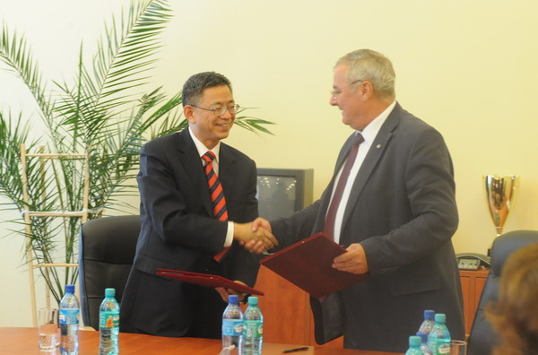 在罗期间,代表团与克鲁日巴比什-波雅依大学校长伊恩•奥瑞尔•波普尔就师生交流、科研合作等项目交换了意见(图2)。双方表示将进一步拓展合作模式、加大合作力度,在科研、教师进修、研究生交流项目等方面加强合作,并建立中罗经济学研究所。王建华一行访问了克鲁日纳波卡技术大学,与校长奥瑞尔•弗拉伊库就师生交流与互访项目、科研合作等项目进行了深入沟通,并签署了框架协议(图3)。