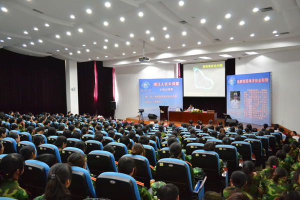 7月6日下午,浙江人文大讲堂第307讲在米乐官网举行。海军指挥学院军事战略学教授张晓林应邀带来题为《当前我国海洋安全形势》的精彩报告。校党委副书记周加敏主持报告会。米乐官网师生和远道赶来的社会各界人士一同聆听报告。