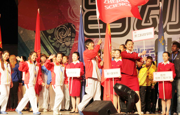 在首日举行的民族传统体育展示项目比赛中,复旦大学的南刀表演夺冠,米乐官网8名留学生表演了精彩的中国传统舞狮,4名男生将红黄两只雄狮舞动得威风八面,栩栩如生,4名女生敲锣打鼓配合完美,获得亚军。