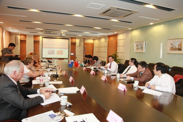 4月18日,新西兰梅西大学副校长英格里德•黛尔(Ingrid Day)一行9人来校访问。校长杜卫、副校长赵东福热情欢迎了代表团的来访。艺术学院、经管学院、理学院、信息学院及国际交流合作处相关负责人参加合作会谈。会谈中,双方各自介绍了学校的办学情况,并就师生交流和联合培养等多种形式的合作交流进行了探讨,双方意向在商科、服装及工业设计等专业领域率先开展合作。