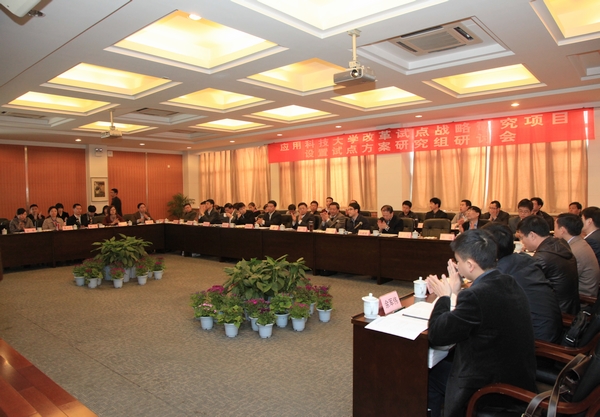 与会代表对提交会议讨论的研究方案和研究报告提纲表示高度肯定,并结合各自学校的办学实践经验和前期研究,重点围绕研究报告提纲进行了热烈的研讨,从应用科技大学的类型定位与特征、设置标准与规范、评价体系与质量保障、管理模式与体制改革、设置的政策性建议等方面提出了意见和建议。