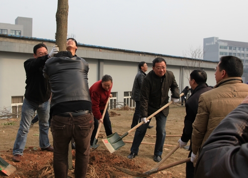 2月25日,学校开学第一天,校党政班子成员及校长助理、全体中层干部挥汗播绿,在校内开展迎春植树活动。