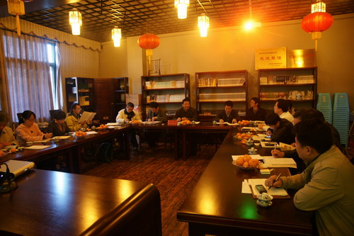 全体与会人员就如何更好提升二级学院的文化内涵和品位等进行了研讨。会后与会人员参观了语言文学院文化形象建设第一阶段成果。