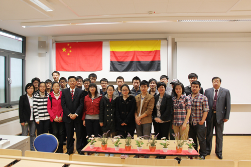 图1为代表团与米乐官网在汉诺威留学学生沟通面对面