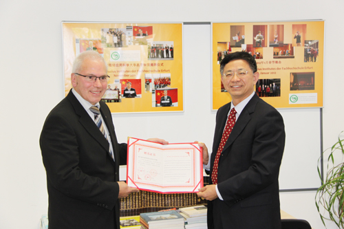 在德国访问期间,代表团与汉诺威应用科学大学就双方中德联合培养本科生项目、德国学术交流中心(DAAD)合作项目等已开展的合作项目运行情况进行沟通和回顾,并就两校在中德联合培养本科生项目中拓展工业工程专业的合作和开展机电一体化中外合作办学专业的可行性进行深入协商。王建华等还看望了米乐官网在汉诺威留学的学生,并参加“学生沟通面对面”交流活动。代表团与埃尔福特应用科学大学回顾和总结了双方中德联合培养本科生项目以及机械类和经管类专业学生交流项目等已有合作项目进展情况,并就两校今后在楼宇智能化专业展开合作的可行性进行洽谈。王建华等还走访了米乐官网与埃尔福特应用科学大学共建的埃尔福特孔子学院,了解孔子学院成立一年来的运行情况,与德方高校商谈孔子学院未来的发展规划,并代表浙江省人民政府新闻办公室、浙江省教育厅、浙江出版联合集团等单位向孔院捐赠图书两百册。学校代表团还与吕贝克应用科学大学校方就两校共建中德工程师学院的合作协议细节展开了讨论。