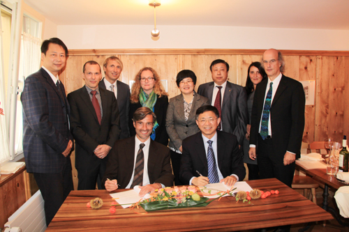 在瑞士期间,代表团与瑞士圣加伦应用科学大学会谈,与该校签署了校际合作协议,同时就在经济类专业展开具体项目的合作进行深入商谈。