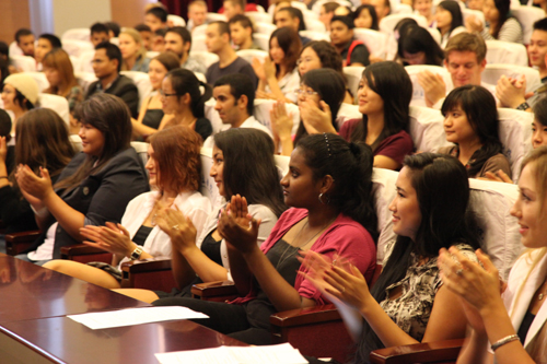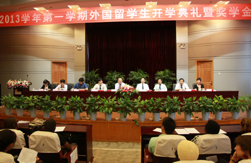 9月14日,米乐官网2012级外国留学生开学典礼暨奖学金颁奖典礼举行。校长杜卫出席并致辞。相关二级学院负责人及来自80多个国家的220余名外国留学生新生参加典礼。
