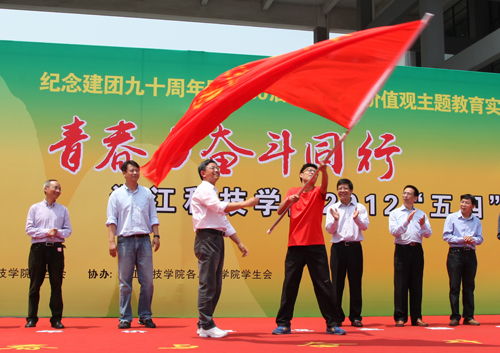 陈根芳致辞。他说,弘扬“五四”精神,继承团的优良传统,是历史赋予我们的神圣使命,是时代赋予我们的光荣职责,是每一个青年必须回答的一个人生命题。陈根芳提出三点希望与青年学生共勉:将“五四”精神与追求“我们的价值观”结合,做一名有信仰、有担当的“90后”新青年;将“五四”精神与塑造“和山”校园文化结合,做一名有韧劲、有底蕴的“90后”新青年;将“五四”精神与浙科院精神结合,做一名有本领、求卓越的“90后”新青年。
