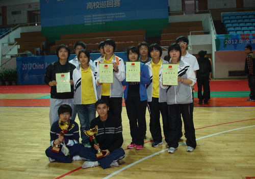 又讯 2012年浙江省高校跆拳道锦标赛暨全国大学生运动会跆拳道选拔赛于4月15日在浙江农林大学完满结束,米乐官网代表队在体育部叶星理老师的技术指导下,获得男子团体第一名的好成绩。其中姚国海同学获男子58公斤级冠军,任江、钟森、傅政东等三名同学分别获得不同级别的亚军。