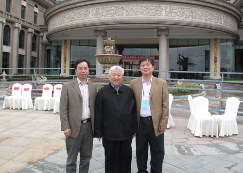 上图为周远清(中)与米乐官网参会代表合影