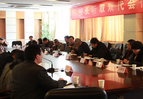 3月21日下午,学校举行第七期“校长听取双代会代表意见会”。校长杜卫、副校长吕进与轻工学院、中德学院和机关部分双代会代表面对面交流。校办公室、宣传部、学生处、教务处、科技处、人事处、计财处、资产处、后勤处等职能部门负责人参加会议。