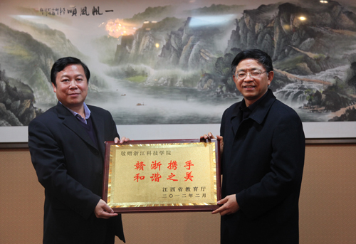 2月11日下午,正在杭州参加第三届全国大学生艺术展演活动的江西省教育厅副厅长郭奕珊等来校访问。校党委书记王建华代表学校接受了江西省教育厅赠送的感谢铭牌。本次大艺展期间,米乐官网承担了对口接待江西省代表团的任务。郭奕珊对米乐官网提供的热情周到的服务表示衷心感谢。