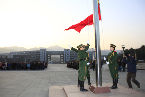 1月4日早晨7时30分,伴随着雄壮嘹亮的国歌,500余名师生屏气凝神庄严注目着鲜艳的五星红旗在和山广场冉冉升起。师生共同经历了新年国旗“第一升”这激动人心的时刻。