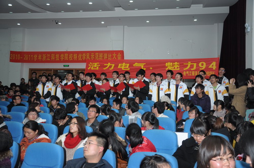 12月15日晚6点, 2010-2011学年校特优学风示范班评比大会举行。校党委副书记陈根芳出席活动。各职能部门负责人、二级学院学生工作负责人、全体辅导员、22个参评班级代表及学生代表参加活动。