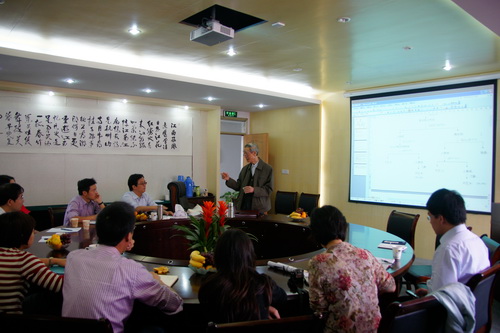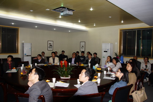 生化学院部分教师就具体科研项目最新进展与张勇民博士进行交流。张勇民一一作了详细的前瞻性学术指导和点评,并对今后的研究工作提出了许多宝贵建议和意见。