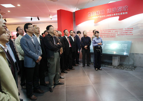 图为校领导王建华、陈根芳、周加敏、吕进、冯军、鲁凤、郑友取等率队参加警示教育。