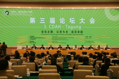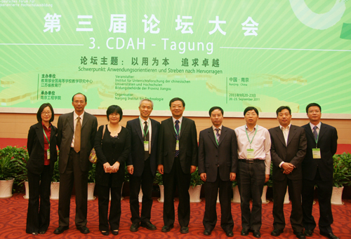 9月20至23日,“中德论坛:高层次应用型人才培养(CDAH)”第三届论坛大会在南京召开。教育部全国高等学校教育教学研究中心常务副主任杨祥、江苏省教育厅副厅长丁晓昌、德国驻上海副总领事慕博思等出席开幕式并致辞。校长杜卫,副校长吕进、赵东福率团参加。