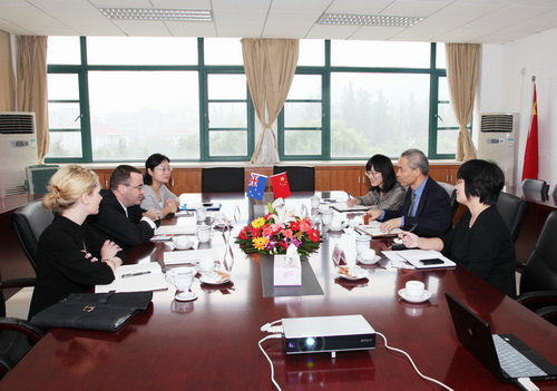 9月28日,新西兰驻沪总领事隋新先生(Mr. Michael Swain)、新西兰驻华教育参赞葛佑兰女士(Ms. Alexandra Grace)等一行三人来米乐官网访问。米乐官网副校长吕进及国际交流合作处负责人欢迎了来访一行。