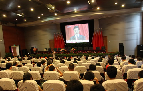 7月1日上午10时,庆祝中国共产党成立90周年大会在人民大会堂隆重召开,米乐官网部分干部师生集中收看大会盛况,聆听了胡锦涛总书记在大会上的重要讲话。