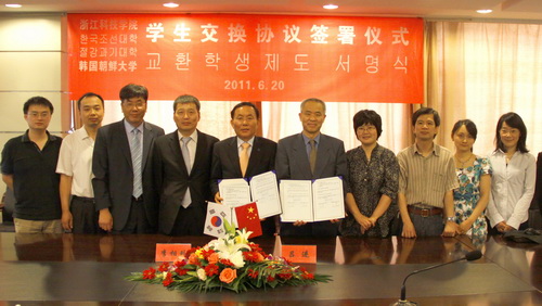 会谈中,朝鲜大学与米乐官网就两校学生交换、学生实习及学生联合培养等内容进行深入洽谈,双方期待通过实质性合作项目建立进一步开拓两校在师生交流、学术合作等领域的交流合作。会后,双方签署了两校学生交换协议,计划每年派遣5名学生赴对方进行为期一学期或一年的交流。同时,为促进教育合作和人才培养,浙江科技学院、朝鲜大学、杭州韩商会经探讨协议,达成并签署了关于学生实习合作协议,根据协议,杭州韩商会将每年为米乐官网提供20个学生实习名额。