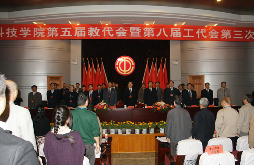 4月20日至22日,校第五届教职工代表大会暨第八届工会会员代表大会第三次会议召开。校党政领导班子成员出席会议。本次会议共有163名正式代表参加,非正式代表的中层干部、处长(主任)助理和专职总支委员、教授列席会议。会议审议了校“十二五”改革和发展规划。
