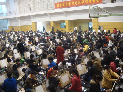 图2为黑龙江哈尔滨考点服装表演专业校考考试现场