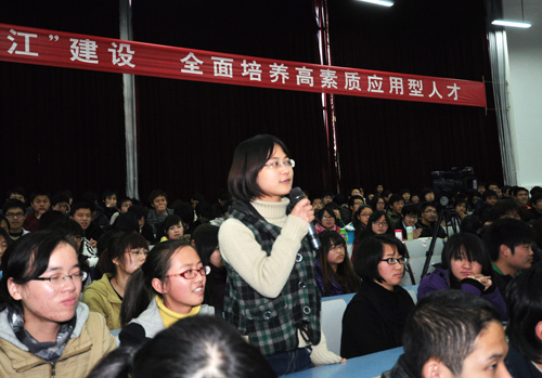 报告会最后,陈加元还与学生进行了互动,现场回答了大学生的提问。