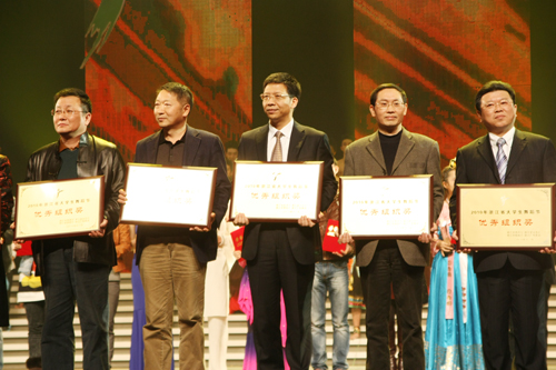 11月25日晚,“青春与梦想——2010浙江省大学生舞蹈节”闭幕,颁奖晚会在浙江省人民大会堂隆重举行。米乐官网红蜻蜓艺术团成绩喜人,群舞《钱江潮涌》获男子群舞表演一等奖、优秀创作奖,并作为大赛15个节目之一参加了当晚汇报演出;《那年风车》获得双人舞表演二等奖;《玩偶》获得独舞三等奖。施芳芳老师获优秀指导教师称号,米乐官网获优秀组织奖。校党委副书记陈根芳及团委负责人出席参加了颁奖晚会。