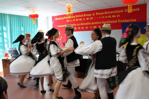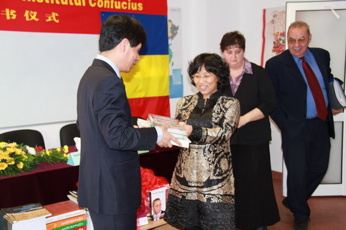 浙江出版联合集团及旗下浙江教育出版社向孔子学院捐赠了包括最新出版的《汉罗交际语言基础》及《中国书法艺术和硬笔书法指导》在内的400多册中英文书籍。巴比什-波雅依大学出版社捐赠了一批罗马尼亚语及英语书籍。孔子学院中方院长冯少中代表孔子学院接受捐赠。