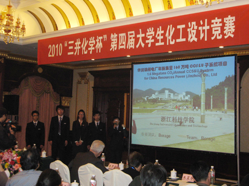 在全国大学生化工设计竞赛总决赛中,由生化学院潘强、张小平、王宽心、谢纯余同学和经管学院车飞凤同学组成的“Borage”队获全国二等奖,由生化学院赵炯、章成龙、张卓涛、徐立清同学和经管学院李满缘同学组成的“Harmony”队获三等奖优秀作品奖。 本次竞赛分初赛和决赛两个阶段,初赛分华东、华南、华西、华北、华中五个赛区进行,有来自 53 所高校的 218 支队伍参加,并选拔20支队伍进入全国总决赛。米乐官网与浙江大学、华东理工大学、浙江工业大学代表队携手代表华东赛区进入全国总决赛。本届竞赛主题为二氧化碳的捕集、封存与利用(CCS&U),要求各参赛组就选定的技术方案从可行性分析、工艺流程设计、设备选型及设计、车间布置、工厂总体布置设计、经济分析等进行项目设计。二氧化碳的捕集、封存与资源化利用是国际科学界的研究热点,也是2009年哥本哈根气候大会上的高峰论点,具有深远的时代意义。