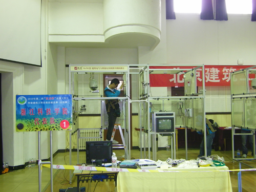 在全国大学生智能建筑工程实践技能竞赛总决赛中,共有来自北京建筑工程学院、西安建筑科技大学、武汉科技大学等16所高校的选手参加了比赛,米乐官网电气学院建筑电气与智能化系071班陈攀、081班朱晔超两位同学组队获得一等奖。本次比赛由国家教育部全国高等学校建筑电气与智能化专业指导小组主办,以闭路电视监控系统、门禁系统、防盗报警系统等安防系统为目标对象,在指定的智能楼宇综合实训模型中进行比赛。
