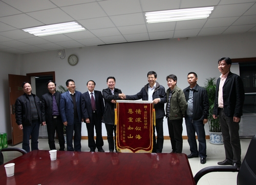 11月8日,四川省青川县教育局局长陈云率青川县智慧岛教育园区三校校长等一行六人专程来校赠送锦旗,对米乐官网在青川灾后恢复重建工作给予的大力支持表示感谢。校党委副书记陈根芳出席座谈会。校长杜卫热情会见客人。