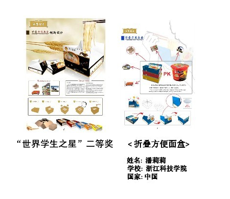 2010年世界包装组织包装设计大赛国际奖评审会议日前在北京闭幕,米乐官网轻工学院学生获得“世界学生之星”二等奖2 项,三等奖3项。
